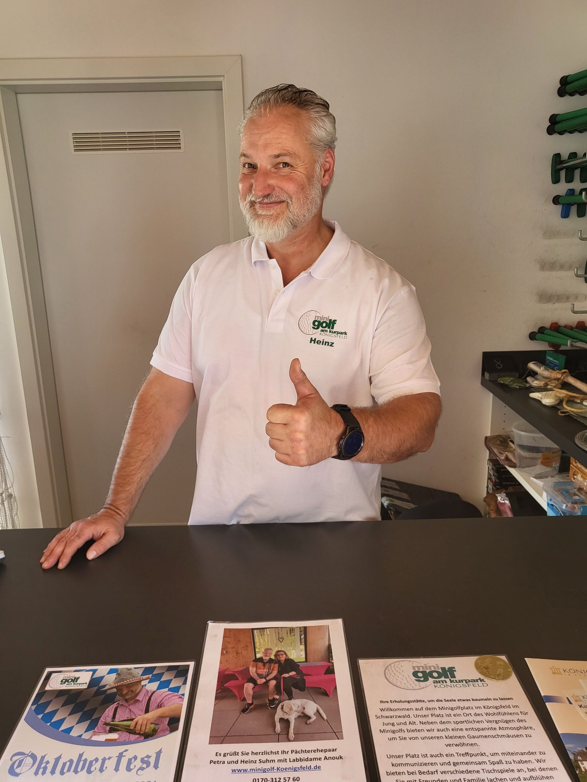 Wir freuen uns darauf, Sie bei uns zu begrüßen. Das Minigolf-Team unter der Leitung von Heinz Suhm, unterstützt von Ehefrau Petra und unserer vierbeinigen Partnerin ANOUK, steht bereit, um Ihnen eine unvergessliche Zeit zu bereiten. Und vergessen Sie nicht, Anouk freut sich darauf, gestreichelt und verwöhnt zu werden, so wie unsere Gäste es wünschen.